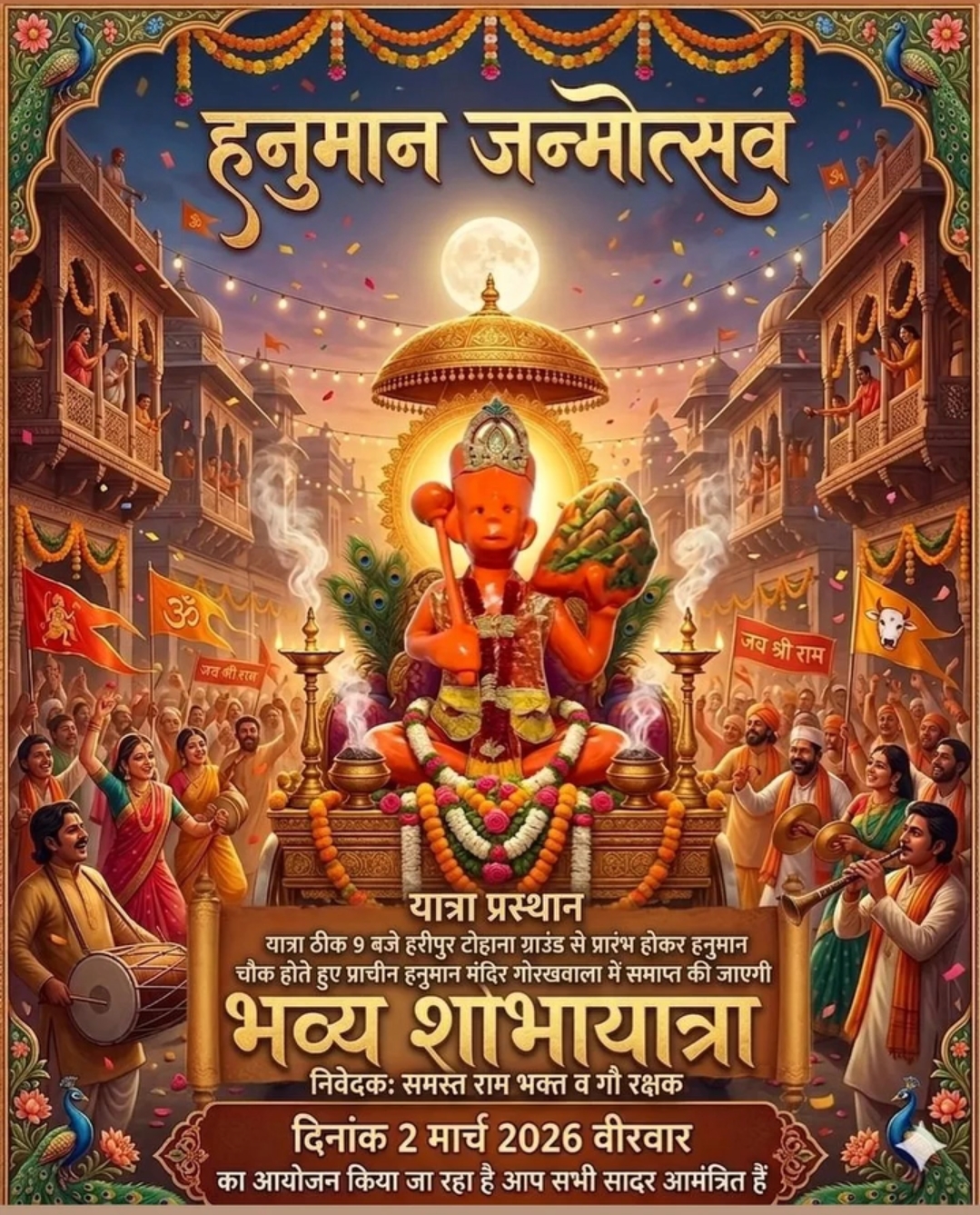 इस अवसर पर समस्त हिंदू समाज को विशेष रूप से आमंत्रित किया गया है, ताकि सभी मिलकर भगवान हनुमान के जन्मोत्सव को भव्य रूप से मना सकें।